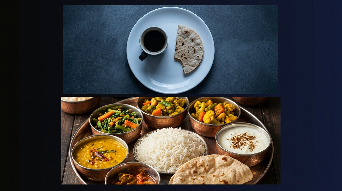 When Shuchi came to us, she was eating barely 900 calories during the day (black coffee for breakfast, half a roti for lunch) and then consuming 800+ calories at dinner alone. She had spent lakhs on dietitians with photocopied plans.